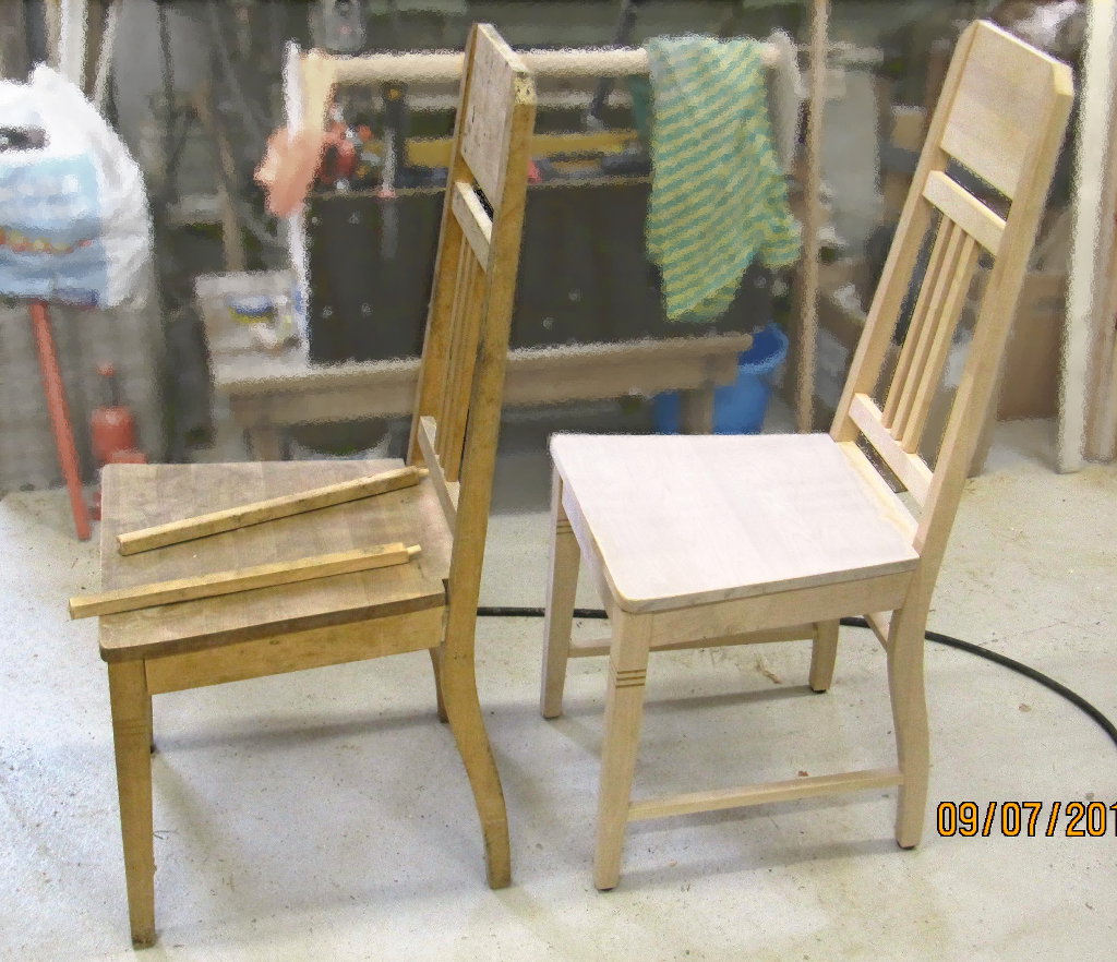 Toinen tuoleista on jo kunnostettu ja lakkausta vailla, toinen odottaa vuoroaan. |